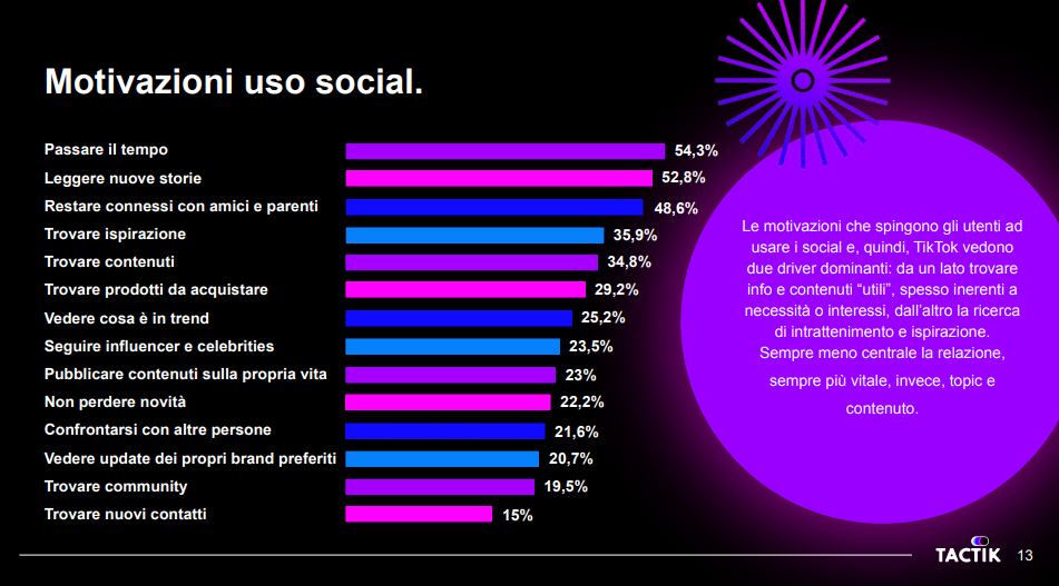 Le nouveau rapport TacTik montre une plateforme pleinement intégrée dans les habitudes numériques des Italiens, avec une utilisation proche de celle des plateformes historiques comme YouTube et Instagram.